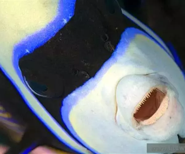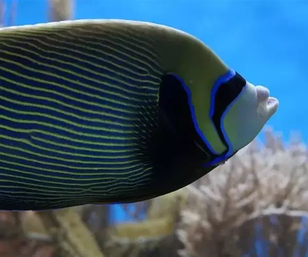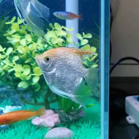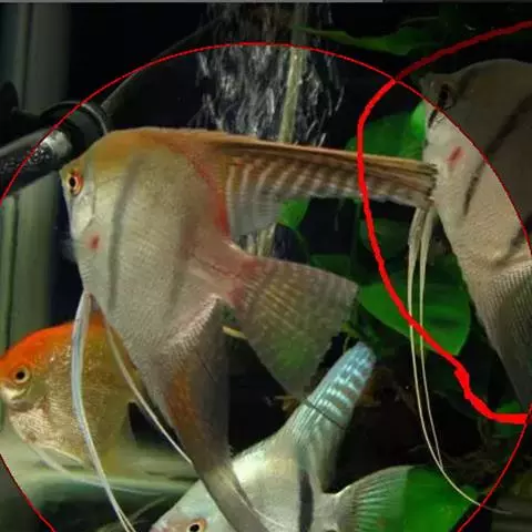 甲尻鱼与其他鱼类共生。此鱼属大Angelfish,右图第5行