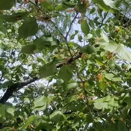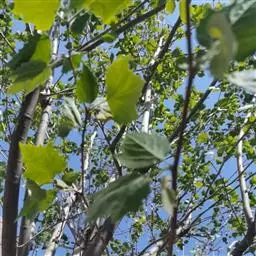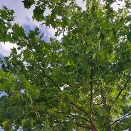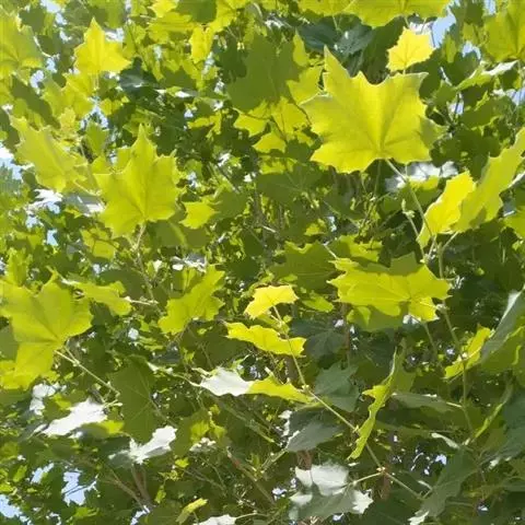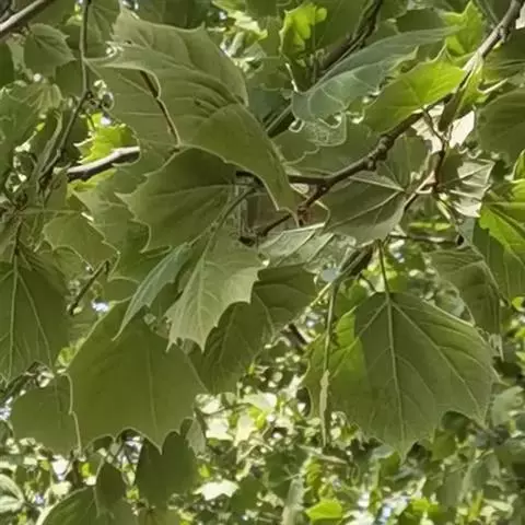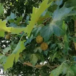 一球悬铃木(学名:Platanus occidentalis L.)是悬铃木科,悬铃木属落叶大乔木,高可达40米;树皮有浅沟,嫩枝有黄褐色绒毛被。叶片阔卵形,基部截形,阔心形,或稍呈楔形;裂片短三角形,边缘有数个粗大锯齿;掌状脉,叶柄密被绒毛;托叶较大,花单性,聚成圆球形头状花序。雄花花丝极短,花药伸长,雌花萼片短小;头状果序圆球形,单生;小坚果先端钝,基部的绒毛长为坚果之半。
