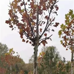 一球悬铃木 小苗:把高度在1.4米以上的当年生小苗于11月至12月内从地中挖起,沿萌发杆基部向上5厘米处水平剪断,单侧根系保留长8厘米,剪去多余部分,和贮藏扦插种条方法一样,挖贮藏坑,把树苗根在下、于向上排紧排齐,上面培上松土,保持透气,不积水,冬天内部不能结冻。