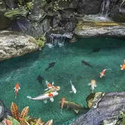在庭院、宾馆直接以观赏为养殖目的的可建水泥池饲养,池子不宜过深,以0.6~0.8米为宜,便于观赏。这类饲养是单养,密度可稍大些,每平方米可放养3~5尾锦鲤。大面积水泥池养殖,放养密度以每平方米水面1~3尾为宜,可适当搭配草、鲢、鳙等进行混养。投喂采取“四定”,一般每天投喂分早晚两次,早上在日出后,下午在日落前,日投喂量为鱼体重的2%~10%,以20~30分钟吃完为好,投喂饵料种类应 龙凤锦鲤 多种多样。同时要求饵料无污染、无腐败变质。