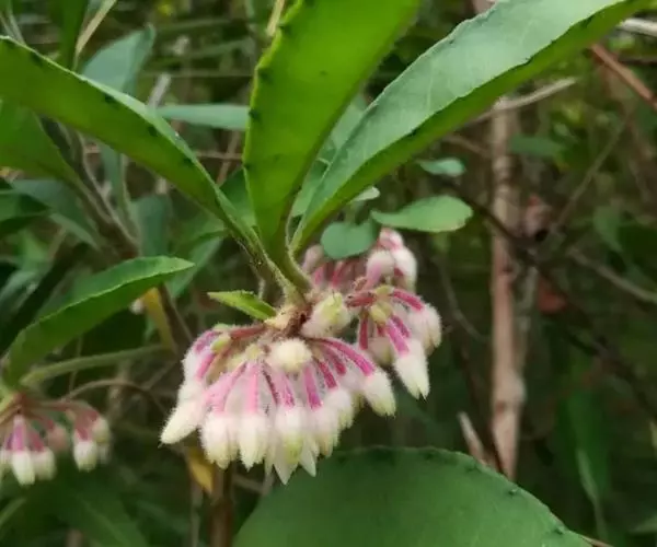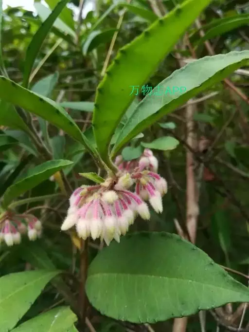 直立灌木,高50-100厘米,稀达2-3米,具匍匐根茎;幼时几全株被灰褐色或锈色长柔毛或长硬毛,毛常卷曲,以后渐无毛。叶片坚纸质,椭圆状披针形至卵形,稀倒披针形,顶端急尖或渐尖,基部楔形,微下延,长7-15厘米,宽2.5-5厘米,近全缘或由边缘腺点缢缩成波状细锯齿或圆齿,通常不明显,叶面除中脉外,几无毛,背面密被长硬毛或长柔毛,具腺点,以背面尤显,侧脉约15对,多少连成边缘脉,无规律或间断;叶柄长5-10毫米,被长柔毛。单或复聚伞花序或伞形花序,被锈色长柔毛,侧生或着生于侧生特殊花枝顶端;花枝长2-15 (-20) 厘米,长者近顶端常有1-2片叶或退化叶;花梗长5-10毫米;花长5-8毫米,花萼仅基部连合,萼片长圆状披针形或舌形,顶端钝,与花瓣等长,丙面被毛,外面尤密,具密腺点;花瓣淡紫色或粉红色,稀白色,卵形至广披针形,顶端急尖,具腺点,无毛;雄蕊较花瓣略长或等长,子房卵珠形,几无毛或被微柔毛;胚珠5枚,1轮。果球形,直径5-7毫米,深红色或带黑色,具腺点,被毛。花期5-7月,果期2-5月。