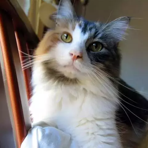 挪威森林猫是猫科猫属哺乳动物。挪威森林猫的头部从两耳根至下巴呈一个等腰三角形,鼻子中长,…