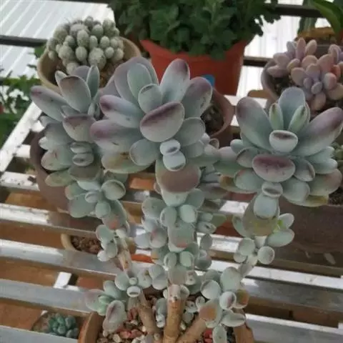 繁殖方式主要用扦插繁殖,也可以叶插的品种;在生长期选取茎节短、叶片肥厚的插穗,长5厘米至7厘米,以顶端茎节最好,剪口稍干燥后再插入沙床,插后约20天至25天生根,30天即可盆栽。