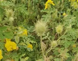 乳茄,茄科茄属直立草本植物,覆盖短的柔毛和扁平尖刺,小枝覆盖长柔毛和扁平刺,刺为蜡黄色,…