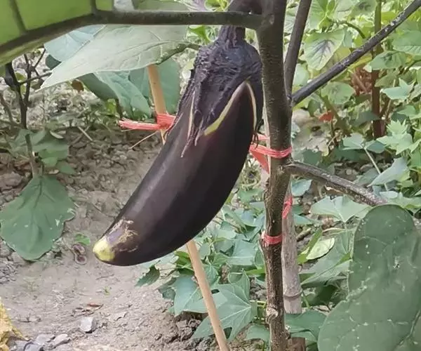 ⑶剪枝:茄子是双杈分枝作物,一般双干整枝,即对茄以上留两个枝条,每枝留一个茄,每层留两个茄。每级发出的侧枝在茄子长到一半大时留2-3片叶摘心。