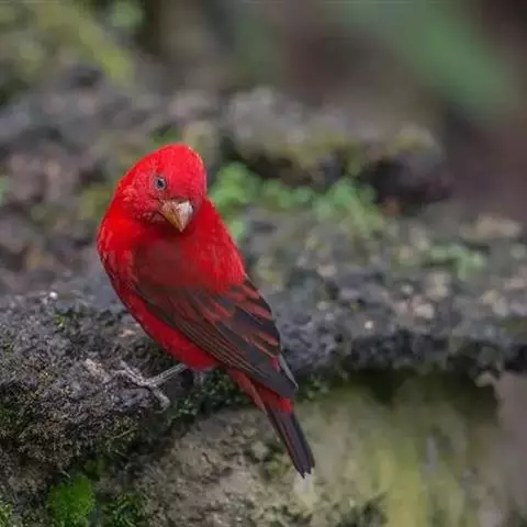 酒红朱雀小型鸟类,体长13~15厘米。雄鸟通体深红色,头部深朱红或棕红色,下背和腰玫瑰红色,…