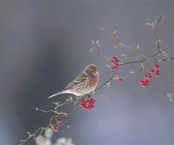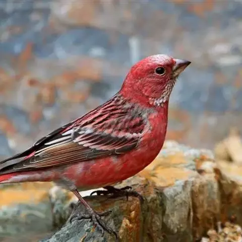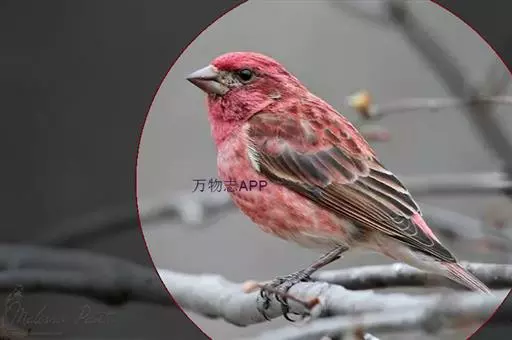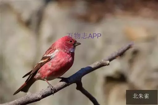 北朱雀,是燕雀科朱雀属鸟类。雄鸟额和头顶前部珠白色具窄的粉红色羽缘,…