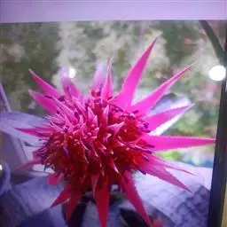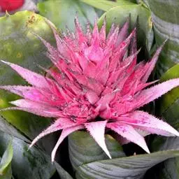 花葶从叶柄基部的鞘状苞片腋内伸出,长34-46厘米,多棱;穗状花序长17-20厘米,通常具9-12朵花;花被裂片6枚,花瓣状,卵形、长圆形或倒卵形,紫蓝色,花冠略两侧对称,直径4-6厘米,上方1枚裂片较大,长约3.5厘米,宽约2.4厘米,三色即四周淡紫红色,中间蓝色,在蓝色的中央有1黄色圆斑,其余各片长约3厘米,宽1.5-1.8厘米,下方1枚裂片较狭,宽1.2-1.5厘米,花被片基部合生成筒,外面近基部有腺毛;雄蕊6枚,贴生于花被筒上,3长3短,长的从花被筒喉部伸出,长1.6-2厘米,短的生于近喉部,长3-5毫米;花丝上有腺毛,长约0.5毫米,3(2-4)细胞,顶端膨大;花药箭形,基着,蓝灰色,2室,纵裂;花粉粒长卵圆形,黄色;子房上位,长梨形,长6毫米,3室,中轴胎座,胚珠多数;花柱1,长约2厘米,伸出花被筒的部分有腺毛;柱头上密生腺毛。蒴果卵形。花期7-10月,果期8-11月。