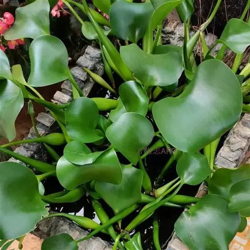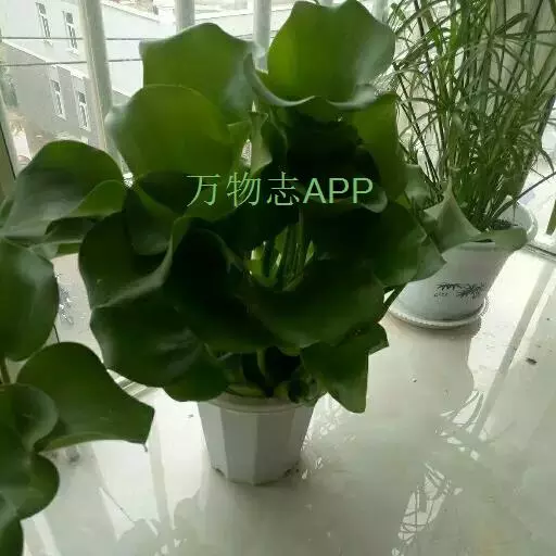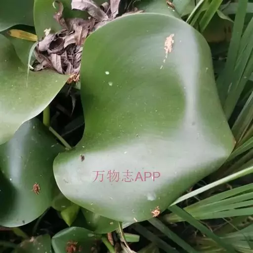 叶在基部丛生,莲座状排列,一般5-10片;叶片圆形,宽卵形或宽菱形,长4.5-14.5厘米,宽5-14厘米,顶端钝圆或微尖,基部宽楔形或在幼时为浅心形,全缘,具弧形脉,表面深绿色,光亮,质地厚实,两边微向上卷,顶部略向下翻卷;叶柄长短不等,中部膨大成囊状或纺锤形,内有许多多边形柱状细胞组成的气室,维管束散布其间,黄绿色至绿色,光滑;叶柄基部有鞘状苞片,长8-11厘米,黄绿色,薄而半透明;