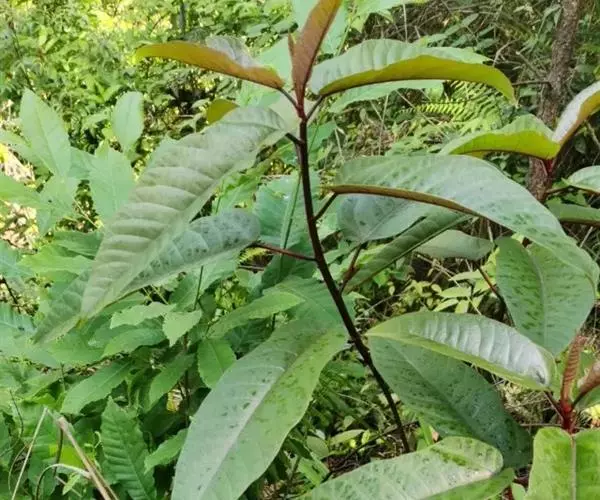 落叶灌木或小乔木,高2-5米;树皮灰褐色;小枝红褐色,节短。叶多形,琴形、椭圆形、椭圆状披针形,长10-18厘米,宽2-7厘米,先端渐尖或为尾状,基部圆形或浅心形,表面略粗糙,背面有细小钟乳体,全缘或微波状,基生侧脉较短,侧脉6-15 对,红色;叶柄长1.5-6厘米,红色;托叶披针形,长约1厘米。榕果成对生短枝叶腋,稀单生,无总梗,球形或圆锥状球形,光滑,直径6-10毫米,成熟时紫黑色,顶生苞片脐状,基生苞片3枚,卵圆形,雄花和瘿花同生于一榕果中;雄花散生内壁,花被片 4-5,匙形,雄蕊2-3;瘿花花被片5-6,子房光滑,花柱短;雌花花被片4-5,包围 子房,花柱侧生,柱头画笔状,被柔毛。瘦果光滑。花期4-5月,果期5-7月 。