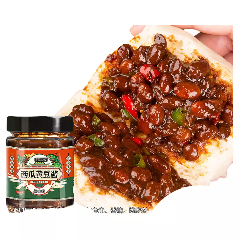 另一做法:用一只瓷罐,洗净晾干,凉开水倒入坛中放入盐(一斤干豆瓣一两盐)将备用的干豆瓣、西瓜倒入坛子里,盐水高于豆瓣1-2寸,采用纱布包好坛口,防止小虫和苍蝇飞入,否则容易生蛆;还要防止雨水入坛使酱发霉变质。有太阳就晒,6月的骄阳最好,有时坛内的豆瓣酱咕咕作响,如开水沸腾,此时要经常用筷子或棍子搅拌,大约两个月的时间,酱就做成了。这种酱这就是晒酱,酱呈红褐色,味道鲜美。