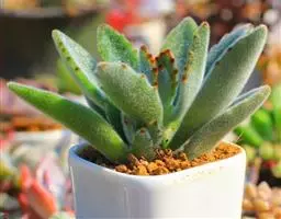 此外还可用老株旁边萌发的幼株进行扦插。扦插前需将切口晾干,再将下端茎干浅埋入沙土中。其余注意事项同叶插。扦插介质需使用疏松的沙质土壤,以便植株的根系能够良好地生长。