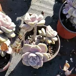 丸叶姬秋丽(Graptopetalum mendozae) 以下为两者的形态区别:丸叶姬秋丽的叶片更圆润偏白;而姬秋丽的叶片则更窄小,且在温差大、光照良好的环境下相比丸叶姬秋丽更偏粉色。丸叶姬秋丽的花瓣是纯白的,而姬秋丽的花瓣上分布着或多或少的细微红点。