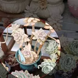 景天科风车草属的多肉植物,原产于墨西哥。株形和风车草属胧月极为相似。花瓣被蜡,叶排成延长的莲座状被…