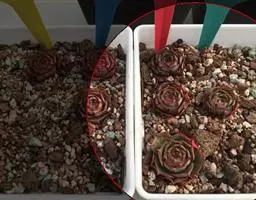 光照越充足、昼夜温差越大,叶片色彩越鲜艳润泽。在温度允许的情况下,最好放到室外养护,保证充足的光照。光照不足或土壤水分过多时徒长,全株颜色暗淡发绿,叶片稀疏间距伸长,加速向上生长,严重影响观赏性,甚至可能因植株的光合作用受阻而死亡。