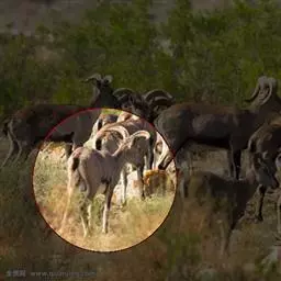 盘羊:雄性肩高可达120厘米,体重可达200千克。雄性的弯角粗大,长达1米以上,向下扭曲呈螺旋状,…