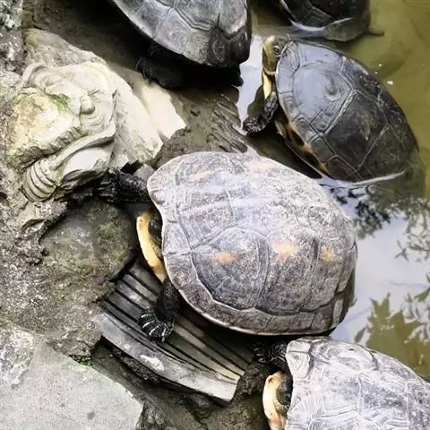 乌龟属半水半栖、半陆性爬行动物。主要栖息于江河、湖泊、水库、池塘及其他水域。白天多陷居水中。夏日火热时,便成群地寻找荫凉处。性情温和,相互间无咬斗。遇到敌害或受惊吓时,便把头、四肢和尾缩入壳内。