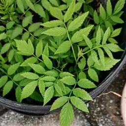 叶大,聚生于茎顶端,近盾形,直径可达60厘米,通常5-9深裂,每裂片再为羽状分裂;叶柄中空,长达60-100厘米。