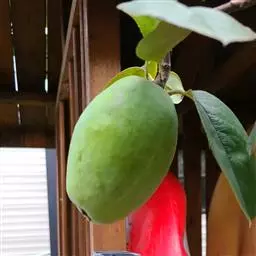 番木瓜(Carica papaya L.)又称木瓜、乳瓜、万寿果,为热带、亚热带常绿软木质小乔木,高达8-10米,具乳汁;茎不分枝或有时于损伤处分枝,具螺旋状排列的托叶痕。果实长于树上,外形像瓜,故名之木瓜。番木瓜的乳汁是制作松肉粉的主要成份。花果期全年。