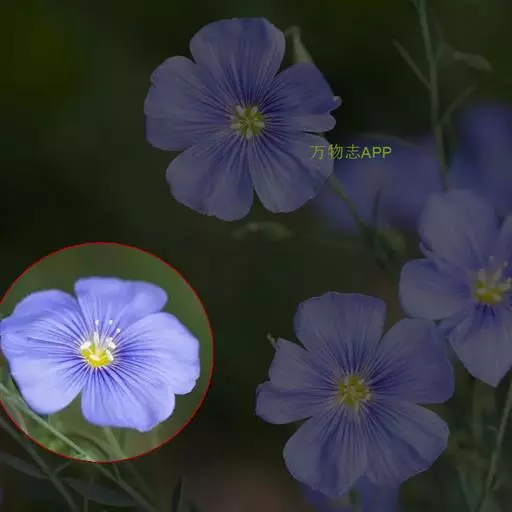 亚麻(学名:Linum usitatissimum L. ):是一年生草本植物,可分成纤维用亚麻、油用亚麻和油纤兼用亚麻三种类型。茎直立,可达1.2米高,上部细软,有蜡质;叶互生,披针状,20-40毫米长,3毫米宽,表面有白霜;花的花瓣5,直径为15-25毫米,蓝色或白色;果实为蒴果,种子扁卵圆形,喜凉爽湿润气候。