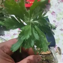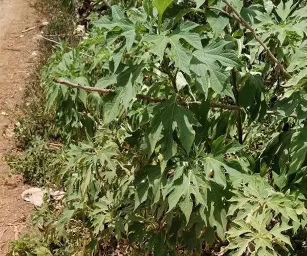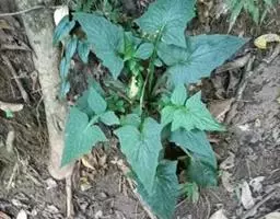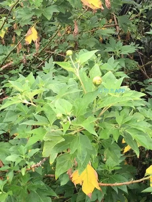 叶卵形或卵状三角形或近圆形,长7-20厘米,3-5深裂,有长叶柄,上部的叶有时不分裂,裂片卵形或披针形,边缘有细锯齿,下面被尖状短柔毛,沿脉的毛较密,基出三脉。