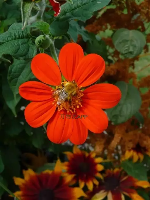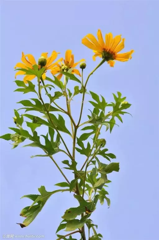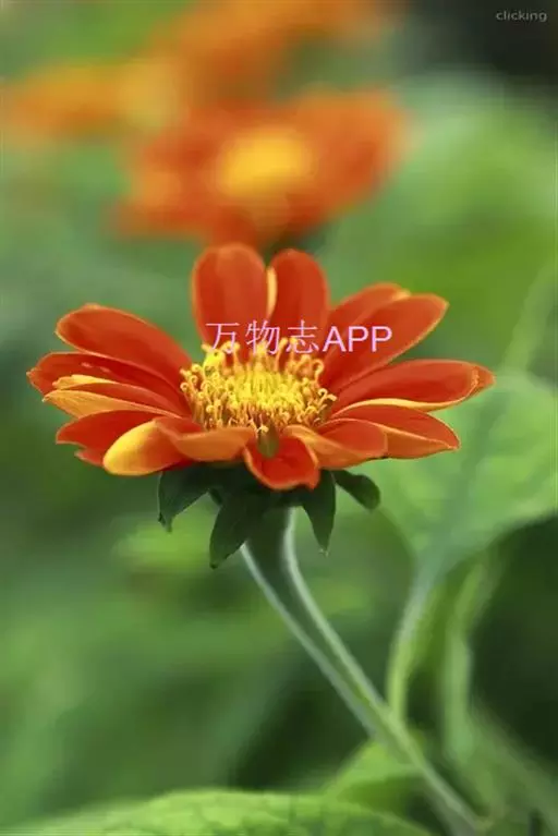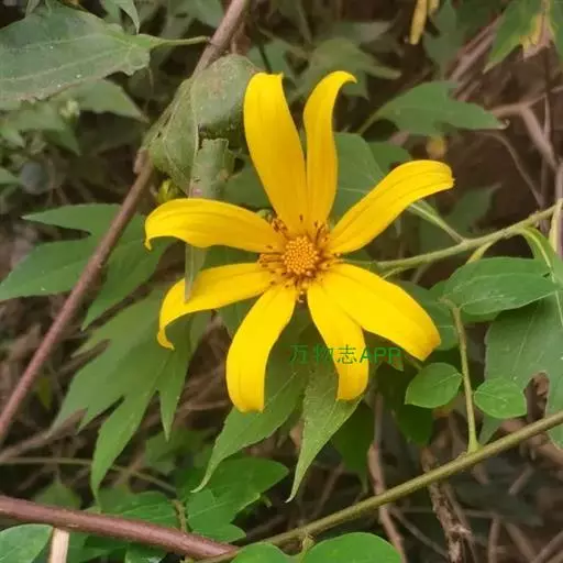 肿柄菊(学名:Tithonia diversifolia A. Gray)菊科肿柄菊属植物,一年生草本,高2-5米。叶卵形或卵状三角形或近圆形,头状花序大,顶生于假轴分枝的长花序梗上,总苞片4层,外层椭圆形或椭圆状披针形,花果期9-11月。
