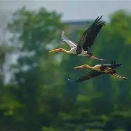 彩鹳:鹳科、鹮鹳属的鸟类。体长93-102厘米,体重2-3.5千克。橙黄色的嘴粗而长,…