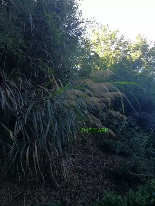 五节芒 多年生草本,具发达根状茎。秆高大似竹,高2-4米,无毛,节下具白粉,叶鞘无毛,鞘节具微毛,长于或上部者稍短于其节何;叶舌长1-2毫米,顶端具纤毛;叶片披针状线形,长25-60厘米,宽1.5-3厘米,扁平,基部渐窄或呈圆形,顶端长渐尖,中脉粗壮隆起,两面无毛,或上面基部有柔毛,边缘粗糙。
