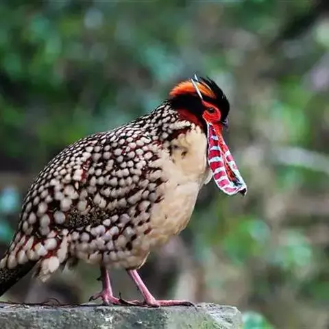 红腹角雉属于鸡形目雉科,雄鸟体羽及两翅主要为深栗红色,满布具黑缘的灰色眼状斑,下体灰斑大而色浅。雌…