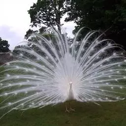 白孔雀,脊椎动物,鸟纲,雉科。其全身洁白无瑕,羽毛无杂色,…