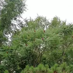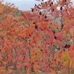火炬树是漆树科盐麸木属落叶灌木或小乔木;株高,树形不整齐;小枝粗壮,红褐色,密生绒毛;叶轴无翅,…
