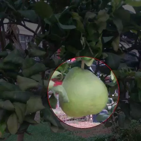 核果扁球形,长约2厘米,径约2.5厘米,成熟时黄色,果核压扁,径1.7-1.9厘米,上面盾状凹入,5室,通常1-2室不育;种子3-4颗。