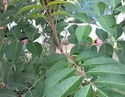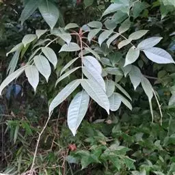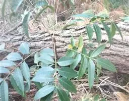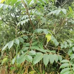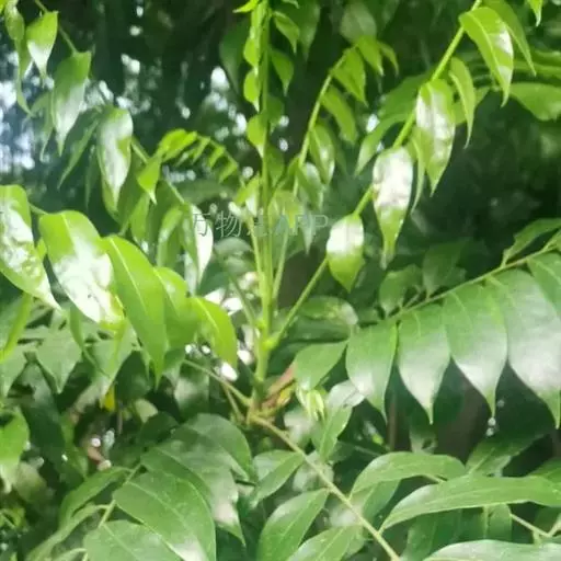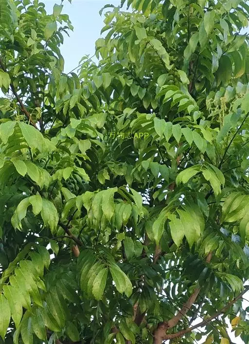 常绿大乔木,高达20余米;幼枝具条纹,被灰色绒毛。奇数羽状复叶长30-45厘米,有小叶5-7对,叶轴和叶柄具条纹,疏披毛;小叶互生,近革质,长圆形,自下而上逐渐增大,长5-14.5厘米,宽2.5-4.5厘米, 先端渐尖,基部常偏斜,阔楔形至近圆形,全缘,两面沿中脉疏被微柔毛,叶背脉腋具灰白色髯毛,侧脉8-9对,近边缘处弧形上升,侧脉和细脉两面突起;小叶柄短,长2-5毫米。