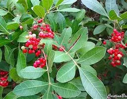 清香木,漆树科黄连木属的灌木或小乔木植物,树皮灰色,小枝具棕色皮孔,…