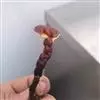 上渐尖,尖端无色,(115-135)μm×(5-6)μm。里面凹入,平滑或稍有脉状皱纹,黑褐色至褐色。菌肉由有锁状联合的菌丝组成,粗约2-3.5μm。子实层生于里面,由担子、担孢子及侧丝组成。担子长60-70μm,粗约6μm,横隔明显。孢子肾形,无色,(9-15)μm×(4-7)μm;分生孢子近球形至卵形,(11-15)μm×(4-7)μm,无色,常生于子实层表面。
