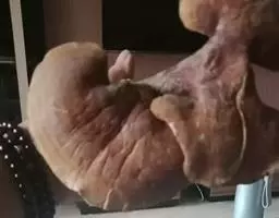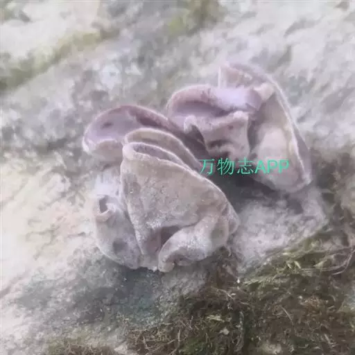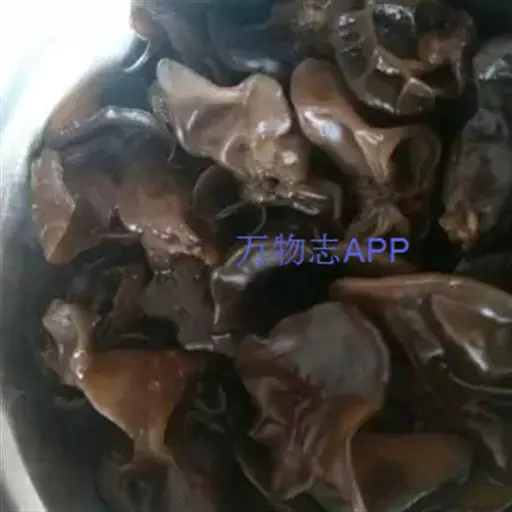 实体丛生,常覆瓦状叠生。耳状。叶状或近林状,边缘波状,薄,宽2-6cm,最大者可达12cm,厚2mm左右,以侧生的短柄或狭细的基部固着于基质上。初期为柔软的胶质,粘而富弹性,以后稍带软骨质,干后强烈收缩,变为黑色硬而脆的角质至近革质。背面外面呈弧形,紫褐色至暗青灰色,疏生短绒毛。绒毛基部褐色,向