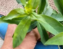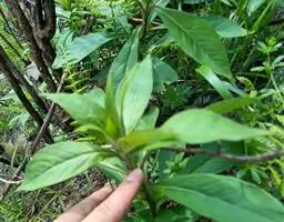 叶对生,有时在茎端互生,近基部的2-3对较小,卵圆形或退化成鳞片状,上部叶卵状披针形至披针形,长4-8厘米,宽1-4厘米,先端渐尖,基部圆形,无柄或近于无柄,上面幼时疏被小刚毛,老时近于无毛,仅下面沿叶脉被毛,两面均有红色或黑色粒状腺点,侧脉3-4对,网脉纤细,不明显。