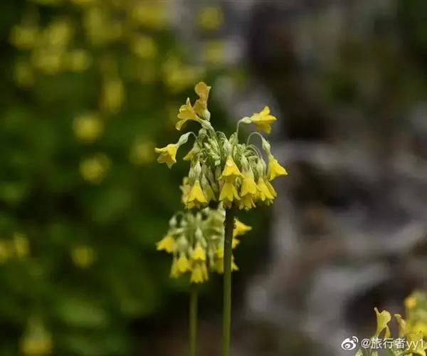 花葶稍粗壮,高15-90厘米,顶端被黄粉;伞形花序通常1轮,2至多花,有时亦出现第2轮花序;苞片披针形或线状披针形,长0.5-2厘米,先端渐尖,基部常稍膨大,多少被粉;花便长1-6(10)厘米,被黄粉,开花时下弯,果时直立;花萼钟状或狭钟状,长7-10(12)毫米,具明显的5脉,内外两面均被黄粉,分裂约达中部,裂片披针形或三角状披针形,先端锐尖,微向外反卷;花冠黄色,稀为乳白色,干后常变为绿色,长1.5-2.5(3)厘米,筒部稍长于花萼,喉部无环状附属物,筒口周围被黄粉,冠檐直径(1)1.5-3厘米,裂片倒卵形或倒卵状矩圆形,全缘或先端具凹缺;长花柱花:雄蕊距冠筒基部2-3毫米着生,花柱长达冠筒口;短花柱花:雄蕊近冠筒口着生,花柱长约2毫米。