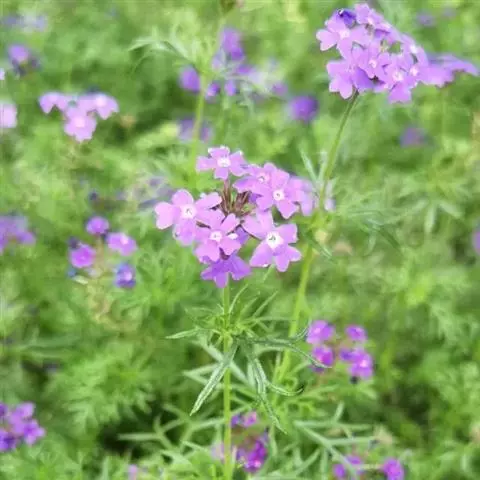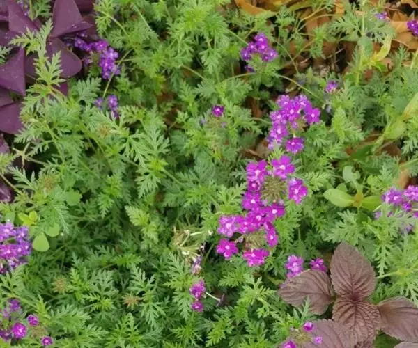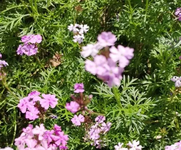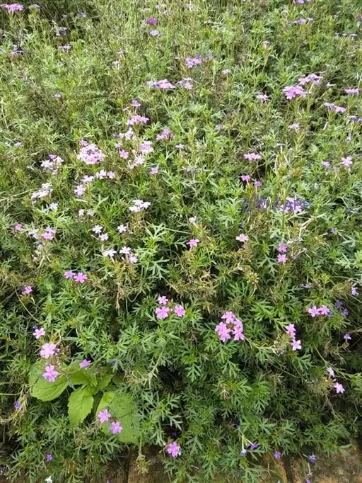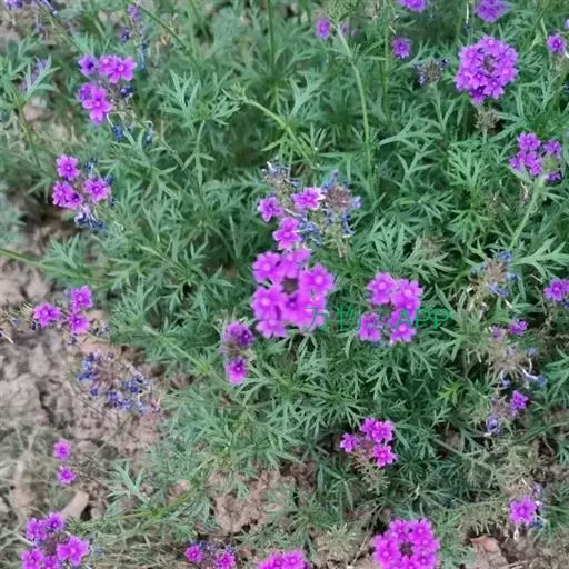 细叶美女樱(Verbena tenera Spreng.):也称羽叶马鞭草,马鞭草科马鞭草属一种多年生草本花卉,也可作一二年生栽培,原产于巴西、秘鲁和乌拉圭等美洲热带地区。
