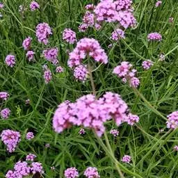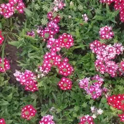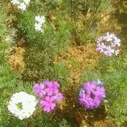 开花呈碎状花序顶生短缩呈伞房状,多数小花密集排列其上,花冠筒状,花色丰富,有白、粉红、玫瑰红、大红、紫、蓝等色,花期4~10月。细叶美女樱病虫害少, 很适合植于花坛、花径、房前、路边作观花草坪, 是一种值得在长江流域大力推广的观花地被植物,尤其适用于观花草坪。
