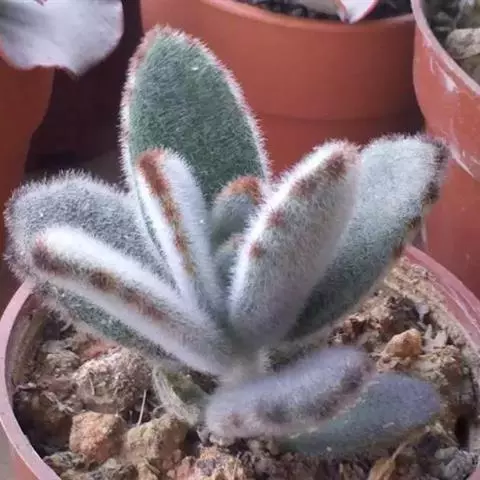熊童子白锦,是景天科银波木属多年生肉质草本植物,熊童子白锦总状花序,花为微红色,原产非洲的纳米比亚…