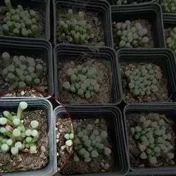 灯美人是景天科的园艺品种,多肉植物。叶片近柱状,丛生,在日照时间长、温差大的环境下会呈现橙粉色。