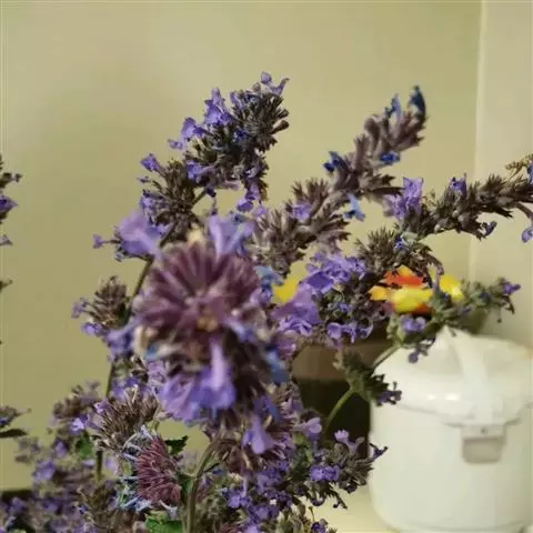 小坚果4,椭圆形,光滑,有光泽,具有一基部着生面。花期6月。全株略带木头甜味的清淡香气,因花、叶和茎上的绒毛均藏有油腺,轻轻碰触油腺即破裂而释出香味。