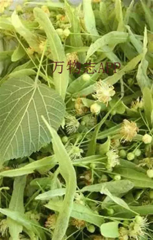 椴树 椴树(原变种),乔木,高20米,树皮灰色,直裂;小枝近秃净,顶芽无毛或有微毛。叶卵圆形,长7-14厘米,宽5.5-9厘米,先端短尖或渐尖,基部单侧心形或斜截形,上面无毛,下面初时有星状茸毛,以后变秃净,在脉腋有毛丛,干后灰色或褐绿色,侧脉6-7对,边缘上半部有疏而小的齿突;叶柄长3-5厘米,近秃净。聚伞花序长8-13厘米,无毛;花柄长7-9毫米;苞片狭窄倒披针形,长10-16厘米,宽1.5-2.5厘米,无柄,先端钝,基部圆形或楔形,上面通常无毛,下面有星状柔毛,下半部5-7厘米与花序柄合生;萼片长圆状披针形,长5毫米,被茸毛,内面有长茸毛;花瓣长7-8毫米;退化雄蕊长6-7毫米;雄蕊长5毫米;子房有毛,花柱长4-5毫米。果实球形,宽8-10毫米,无棱,有小突起,被星状茸毛。花期7月。