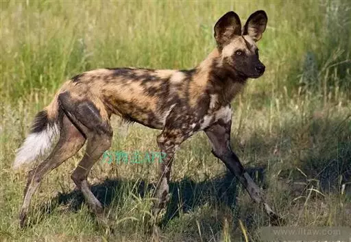 非洲野犬(学名:Lycaon pictus):体长100厘米,尾长30-45厘米,体重17-36千克。毛色较杂乱,包括黑色、黄色和白色等,每个个体毛色斑纹均不相同。前肢无爪。前臼齿较大,可磨碎大型骨头,类似鬣狗。群居,通过叫声进行定位。采取群体合作方式猎杀中型有蹄动物,追击时速可达45千米。全年可繁殖,多为雨季,每胎产2-19仔,通常10仔,幼仔一般在其他动物(比如土狼)的巢穴中出身,12-18个月性成熟。