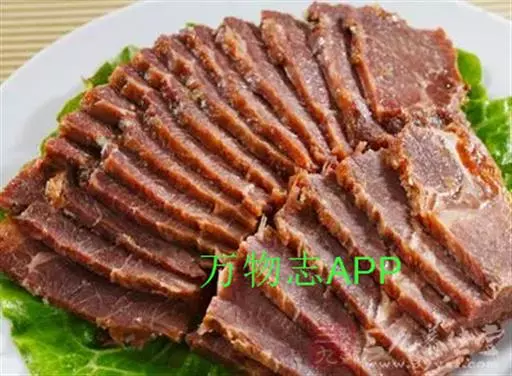 酱牛肉 ,一种菜名,是指以牛肉为主要原料,经过多种调味料的腌制而制成的一种肉制品,是源于内蒙古呼和浩特著名的特色名菜。有补中益气、滋养脾胃、强健筋骨、化痰息风、止渴止涎的功效,适用于中气下陷、气短体虚,筋骨酸软、贫血久病及面黄目眩之人食用。