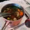 4、将冷却好的牛肉,倒入烧开的汤中小火煨半小时。