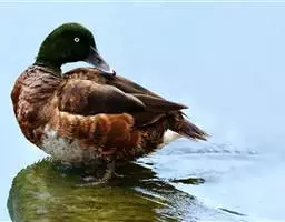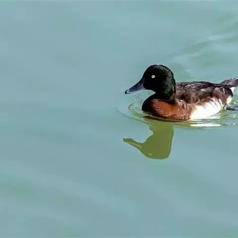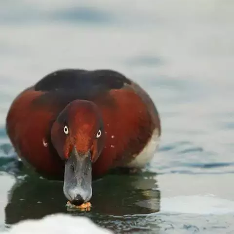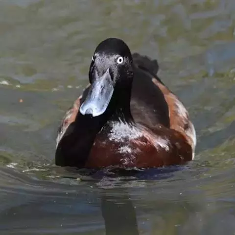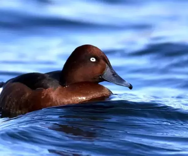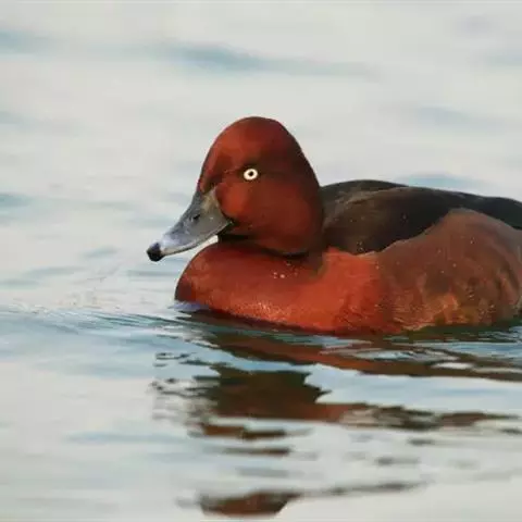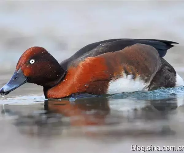 白眼潜鸭(学名:Aythya nyroca)属中型潜鸭,个体比红头潜鸭小,和凤头潜鸭差不多。体长33-43厘米,体重0.5千克以上不到1千克。雄鸟头、颈、胸暗栗色,颈基部有一不明显的黑褐色领环;眼白色,上体暗褐色,上腹和尾下覆羽白色,翼镜和翼下覆羽亦为白色,两胁红褐色,肛区两侧黑色。雌鸟与雄鸟基本相似,但色较暗些。在水中时腹部白色虽不可见,但头、颈、胸和两胁的暗栗色,以及肛区两侧的黑色和尾下白色形成明显对照。飞翔时腹中部和翅上翅下白斑与暗色体羽亦形成强烈对比,反差强烈,杂食性,主要以水生植物和鱼虾贝壳类为食。栖居于沼泽及淡水湖泊。冬季也活动于河口及沿海泻湖。怯生谨慎,成对或成小群。繁殖在德国、匈牙利、波兰、西班牙、希腊、摩洛哥等欧洲中部、南部和地中海沿岸国家,往东到土耳其、克什米尔、伊朗、外高加索,一直到西伯利亚西南部;越冬在缅甸、印度北部和中部、孟加拉国、伊拉克、伊朗南部、埃及和地中海沿岸。