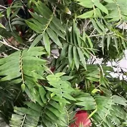 凤尾竹 Raeusch. ex Schult. ’Fernleaf’ R. A. Young)是禾本科,簕竹属孝顺竹的变种。植株较高大,杆高可达6米,竿中空,小枝稍下弯,下部挺直,绿色;竿壁稍薄;节处稍隆起,无毛;叶鞘无毛,纵肋稍隆起,背部具脊;叶耳肾形,边缘具波曲状细长繸毛;叶舌圆拱形,叶片线形,上表面无毛,下表面粉绿而密被短柔毛,小穗含小花,中间小花为两性;外稃两侧稍不对称,长圆状披针形,先端急尖;内稃线形,脊上被短纤毛,花药紫色,子房卵球形,羽毛状。成熟颖果未见。原产中国,华东、华南、西南以至台湾、香港均有栽培。凤尾竹喜温暖、湿润和阳光充足的环境,耐寒。宜土层深厚、肥沃、疏松的微酸性壤土。该种观赏价值较高,宜作庭院丛栽,也可作盆景植物。全草或根入药,味淡、微苦,性寒,有清热利湿、凉血止血、消肿解毒功效,可治痢疾、泄泻等多种病症。凤尾