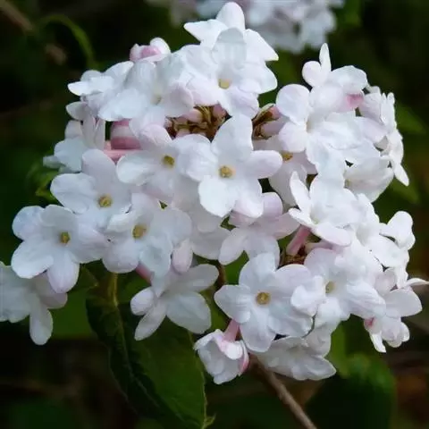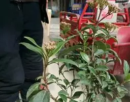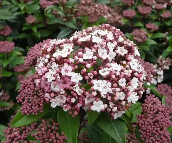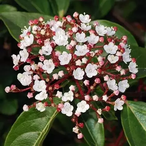 地中海荚蒾冠形优美,花蕾殷红,花开时满树繁花,一片雪白,因而也可孤植或群植,用作树球或庭院树。